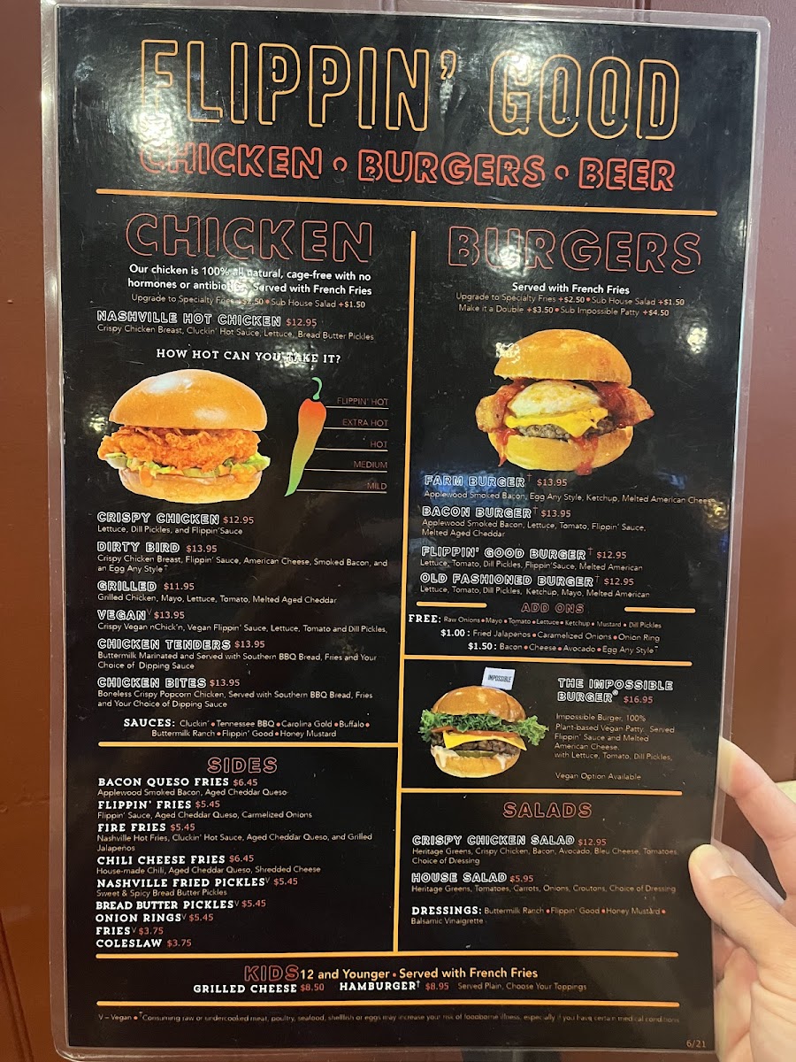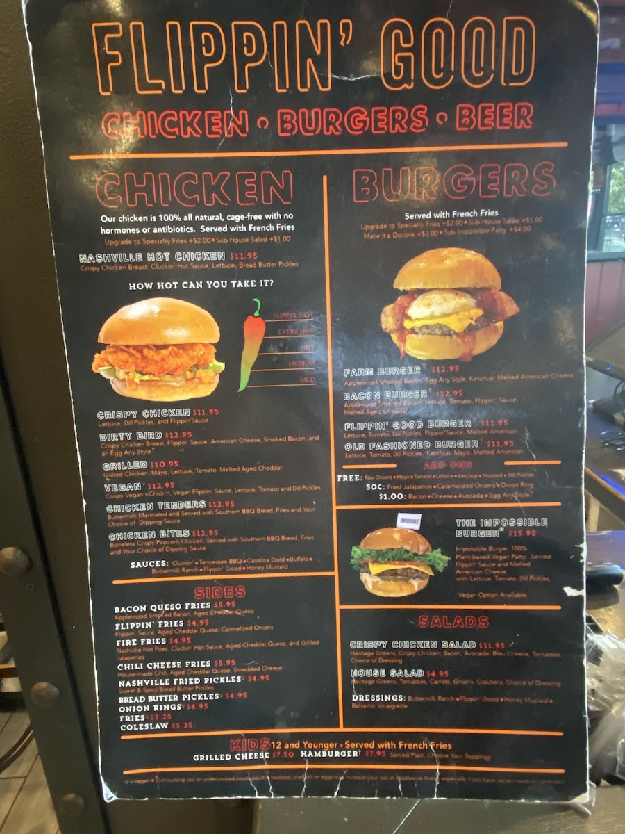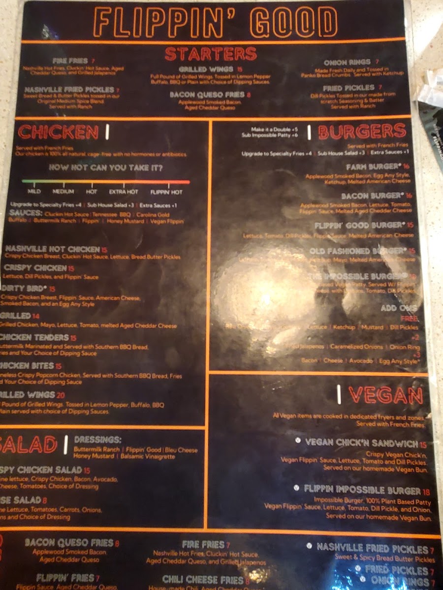 This menu is suitable for casual dining occasions such as lunch or dinner, appealing to those seeking hearty meals like burgers or chicken sandwiches. The inclusion of sides like fries and options for dressings on salads provides customizable meal components. The menu structure supports straightforward ordering with clear groupings for ease of selection.