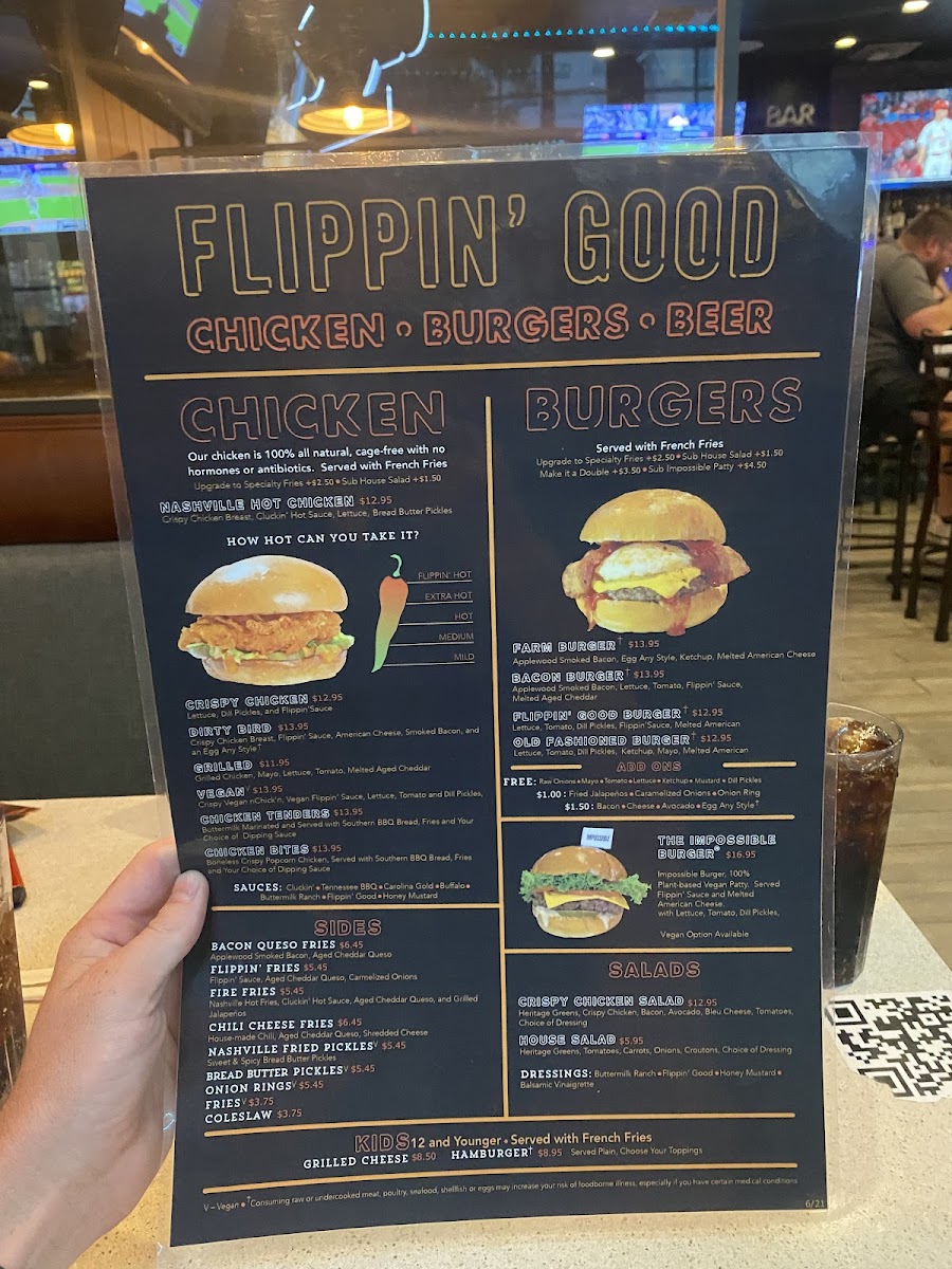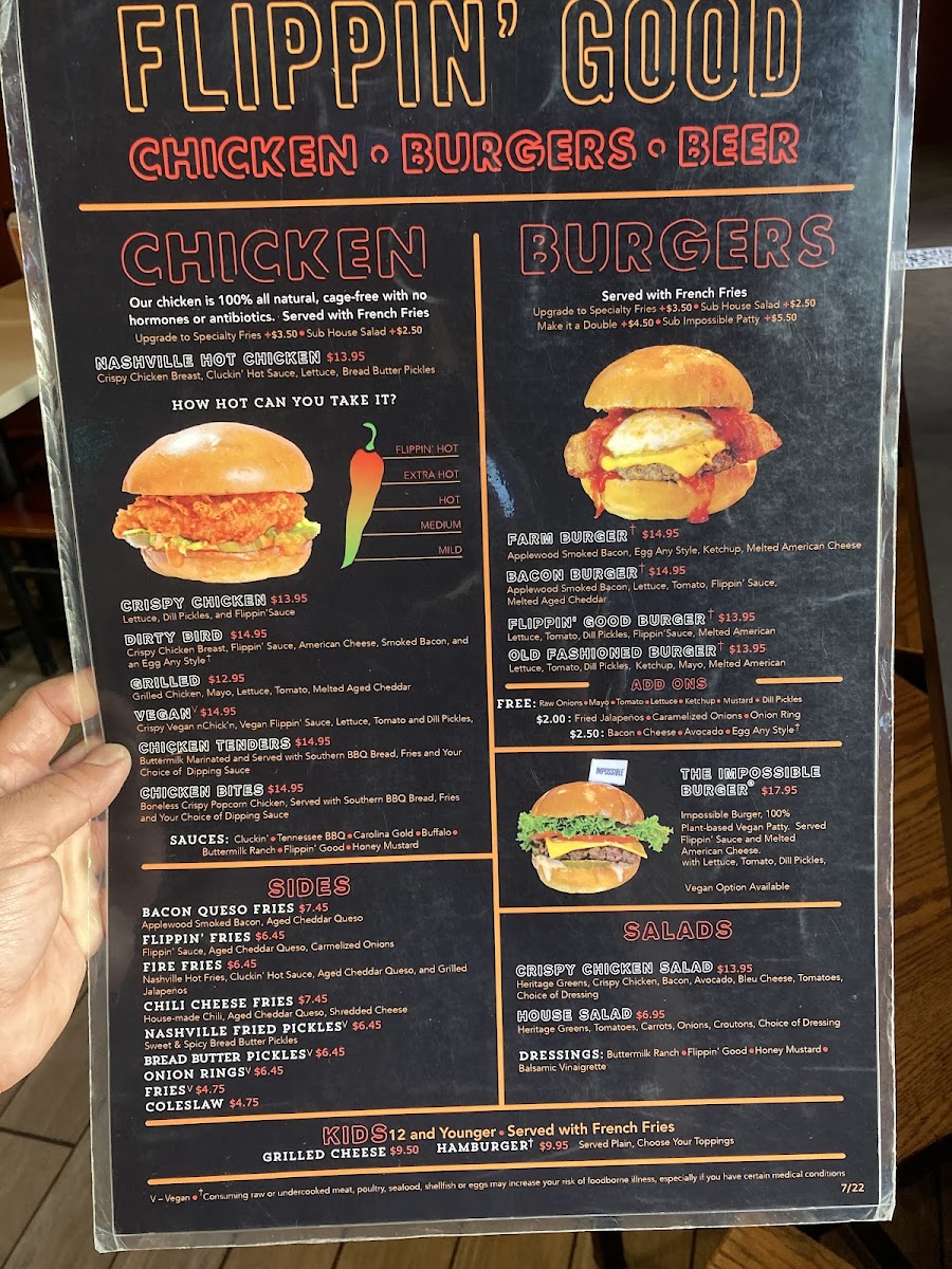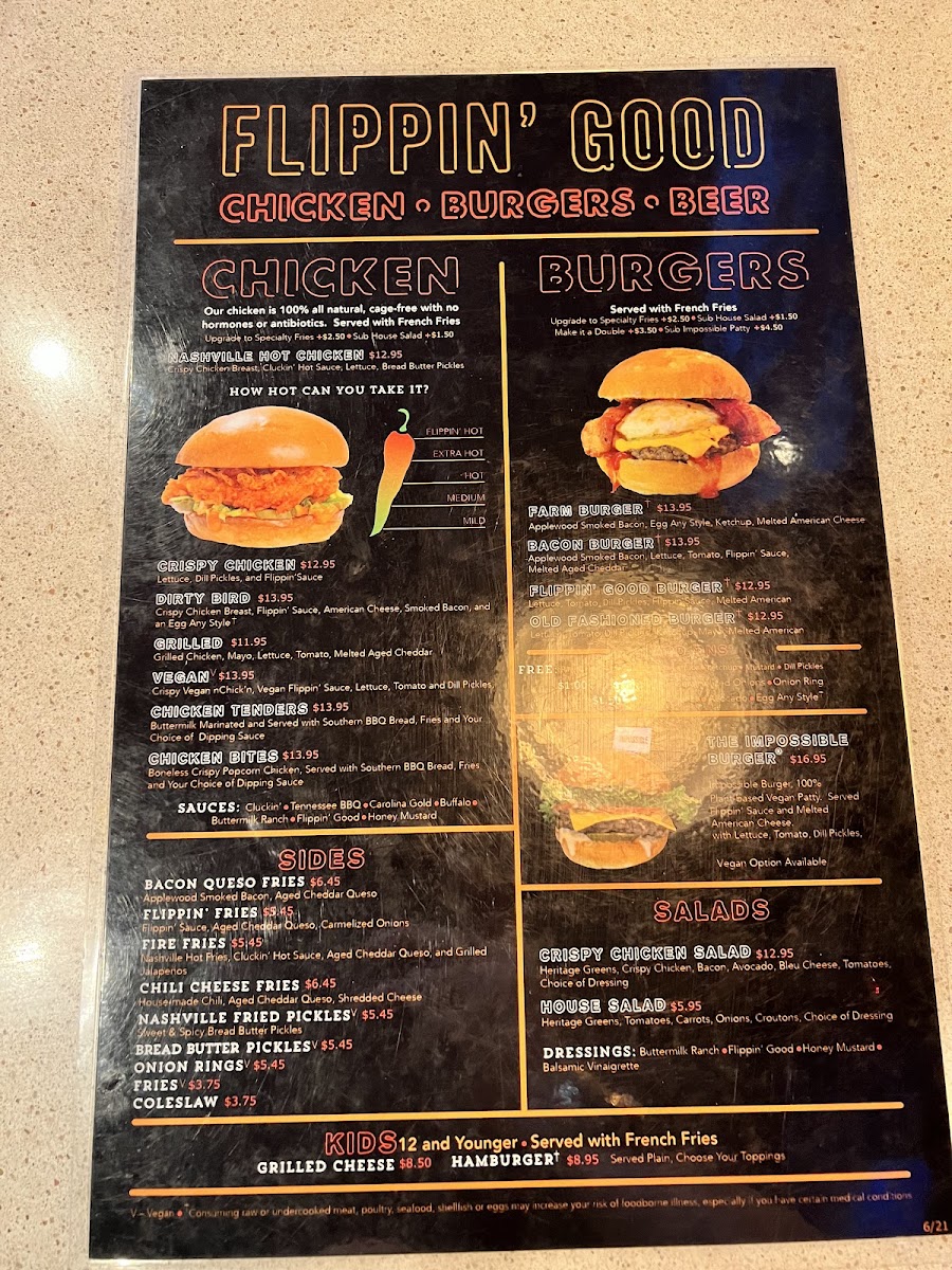 This menu is suitable for casual dining occasions such as lunch or dinner, appealing to those seeking hearty meals like burgers or chicken sandwiches. The inclusion of sides like fries and options for dressings on salads provides customizable meal components. The menu structure supports straightforward ordering with clear groupings for ease of selection.